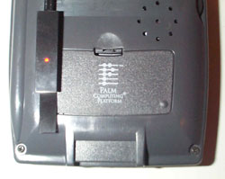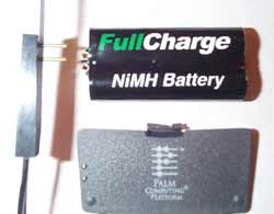 Well... welcome eXtend Computer & Instrument into the "Palm Economy." These guys are battery smart people... they make EV & Hybrid electronics for vehicle and boat battery systems. Now they have applied their genius to the Palm. Within the compact packaging seen above you'll find the contents below; an 110V AC Adapter, a FullCharge NiMH Battery, a replacement battery door cover, as well as an installation and operation direction sheet. ![]() Installation is a snap. Simply remove the existing battery door, remove batteries, install the FullCharge NiMH battery pack, and replace the door with the included door. The new door has two holes drilled in precisely the right location to receive the pins of the AC recharger pack. The completed install looks like this.